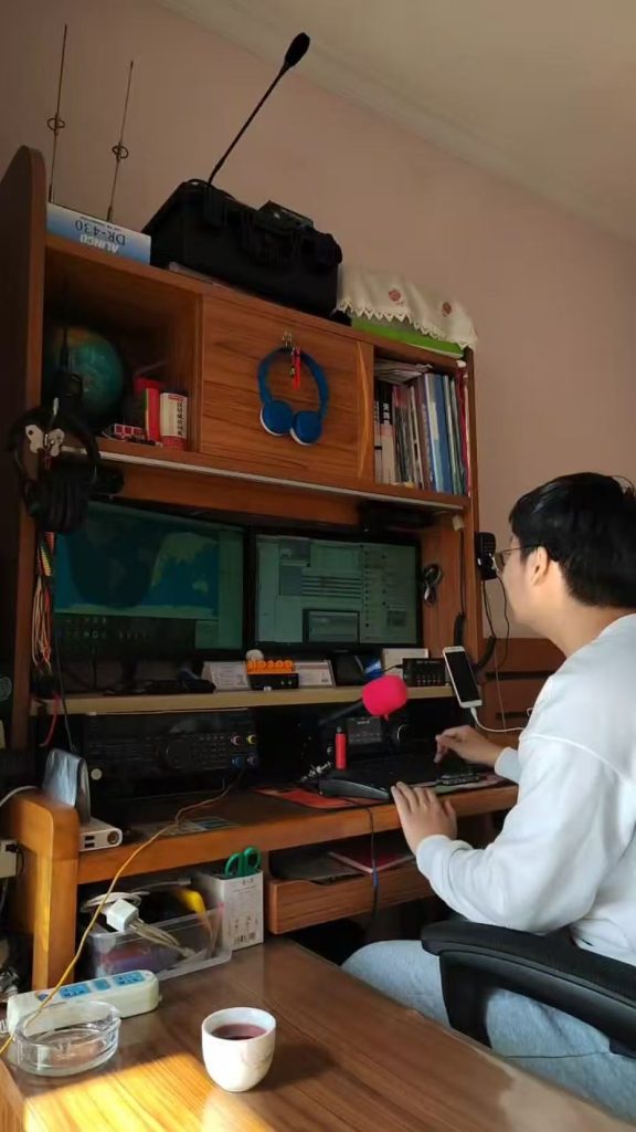 这个过程中少不了很多老师的支持,尤其是 BD3OD 和 BD3RKB,我使用他们的电台工作了许多的 DX。另外特别惊喜地是,在校园中也有一位 OM BD3RK 架设了自己的天线并邀请我到他的电台室客席。