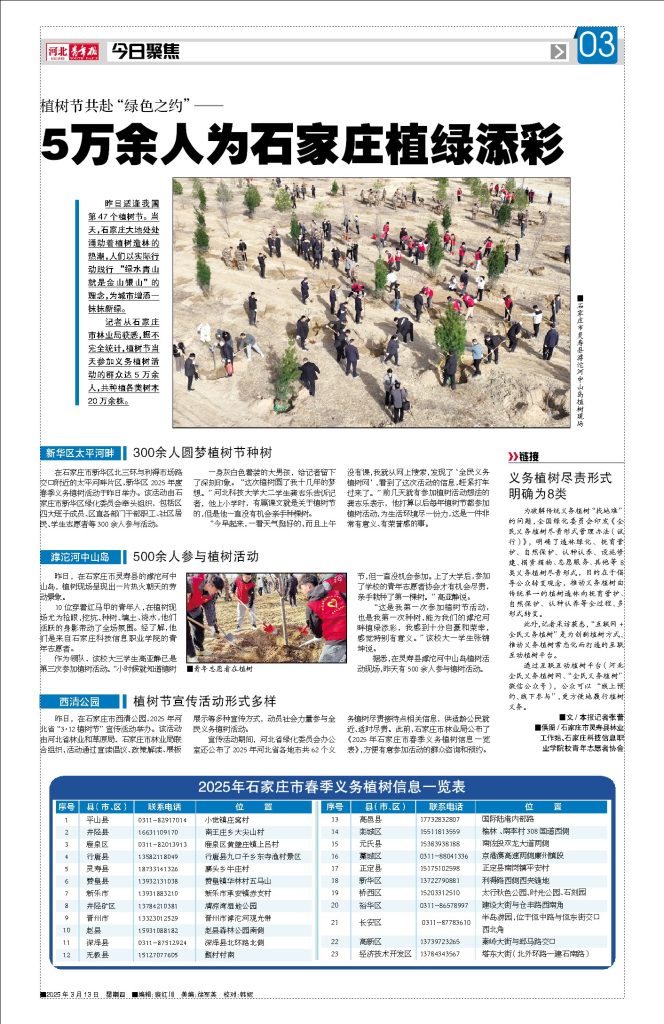 2025 年植树节早上起来发现已经错过了早八,所以想着不如做点有趣的事情——在植树节真的去植树。没想到就是这么个无心之举,正好被当时在现场报道的电视台看到了,于是接受了采访然后把我推到了河北青年报的记者那了。